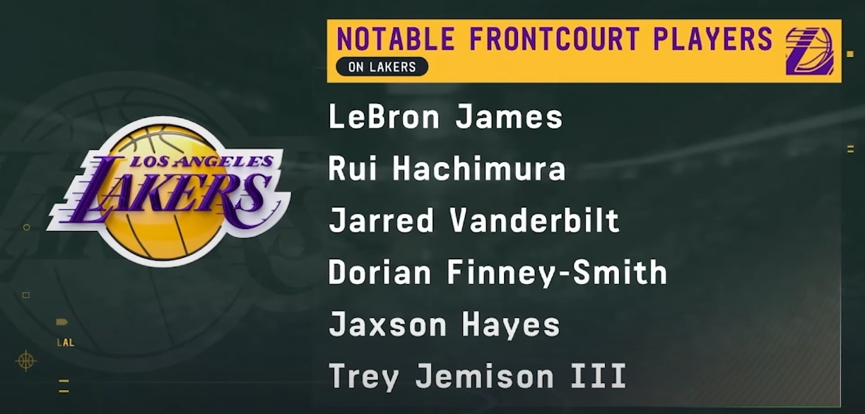 ESPN列出了湖人值得注意的前场阵容: