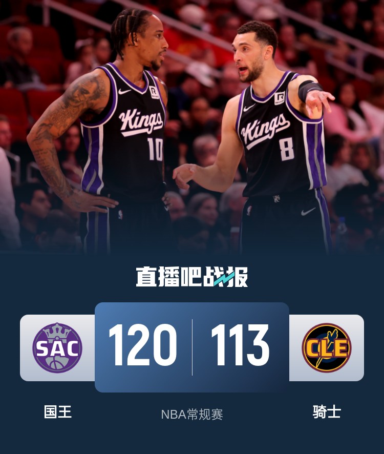首节对决双方状态相当一路拉锯交替拿分,萨博尼斯最后时刻连续拿下8分帮助国王在最后时刻拿到4分领先占据先机;次节骑士凭借替补的出色发挥送出10-0的攻势夺回主动权,随后他们用稳定的进攻抵挡住对手的反扑,埃利斯最后的超远压哨三分帮助国王追至1分进入下半场。休息归来骑士开局表现不错进攻端稳定拿分以攻代攻一直占据上风,然而后半段6分钟里仅得8分的表现突然崩盘,国王则送上一波27-8的攻势直接实现反超并拉开两位数优势;末节骑士疯狂反扑并依靠节中的8-2攻势实现反超,不过拉文最后时刻站出来命中致命三分稳住局势,最终,国王客场力克骑士拿下比赛并升至西部第九位。
