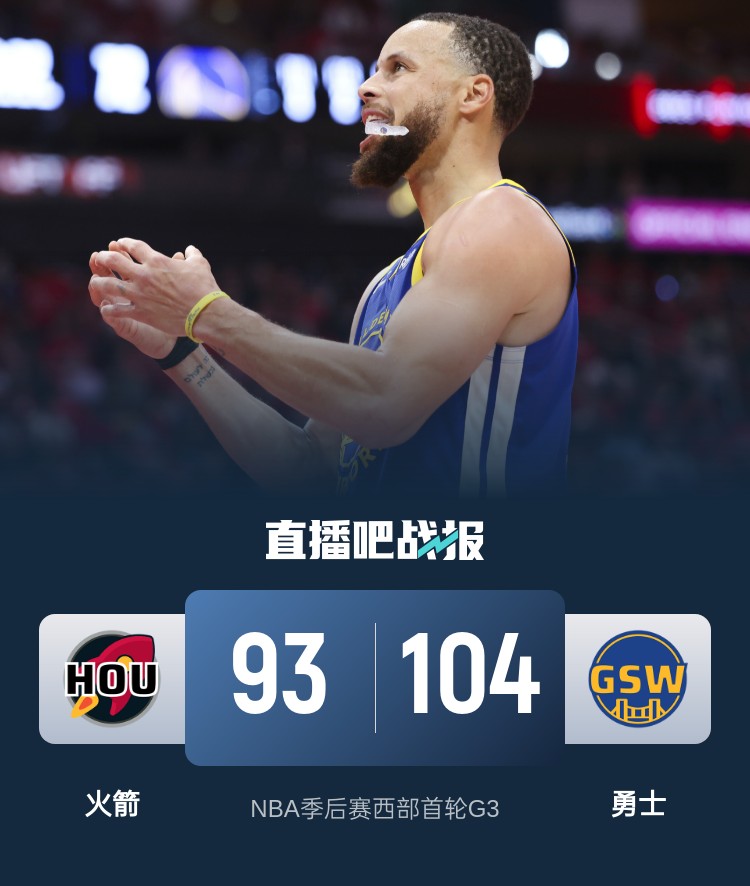 4月27日讯 NBA季后赛西部首轮G3,勇士今日回到主场迎战火箭,前两战双方战成1-1平,此役巴特勒、泰特和兰代尔缺战。