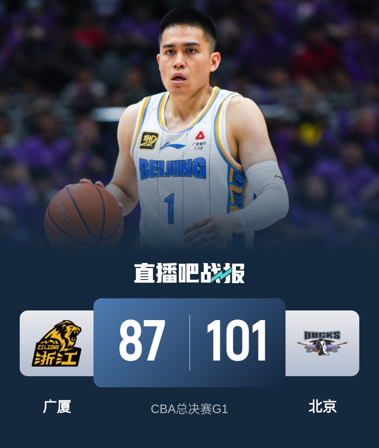 比赛开始,双方都迅速进入状态,奈特里突外投连砍8分助广厦16-2攻击波建立主动权,纳托尔连砍7分紧急止血,首节广厦领先10分,次节双方围绕10分左右分差展开拉锯战,胡金秋内线继续弹无虚发,朱俊龙崴脚受伤,奥莫特和杰曼联手带队一波17-3攻击波追平比分。下半场,陈盈骏找到外线手感连中3记三分,北京14-4攻击波直接领先到双位数,胡金秋三分加上篮再次止血,随后胡金秋再中压哨三分追到差3分,末节北京上来9-0重新拉开双位数领先,广厦进攻端断电半节仅得2分,北京牢牢掌握住十几分领先,最终北京101-87力克广厦,1-0领先。