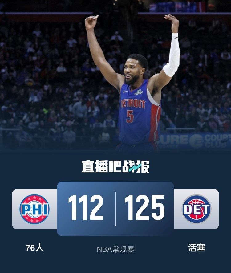 76人(20-31):马克西27分3板7助2断、恩比德23分7板6助2帽、乌布雷14分11板2助、格莱姆斯14分2板2助、乔治14分1板、爱德华兹11分3板1助2断、康西尔3分1助、德拉蒙德2分4板2助、洛瑞2分2板3助、博纳2分1板1助、埃里克-戈登3板2助、奥基基1板。