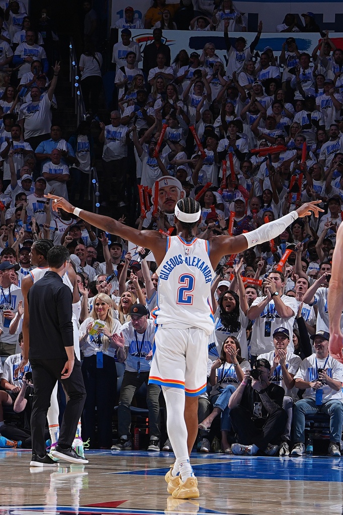 亚历山大在夺得联盟得分王并率领雷霆取得联盟最佳的68胜后,生涯首次荣膺常规赛MVP殊荣。在雷霆主场Paycom中心球馆举行的西决G2,NBA总裁萧华在雷霆以118比103战胜森林狼的赛前为亚历山大颁发了MVP奖杯。