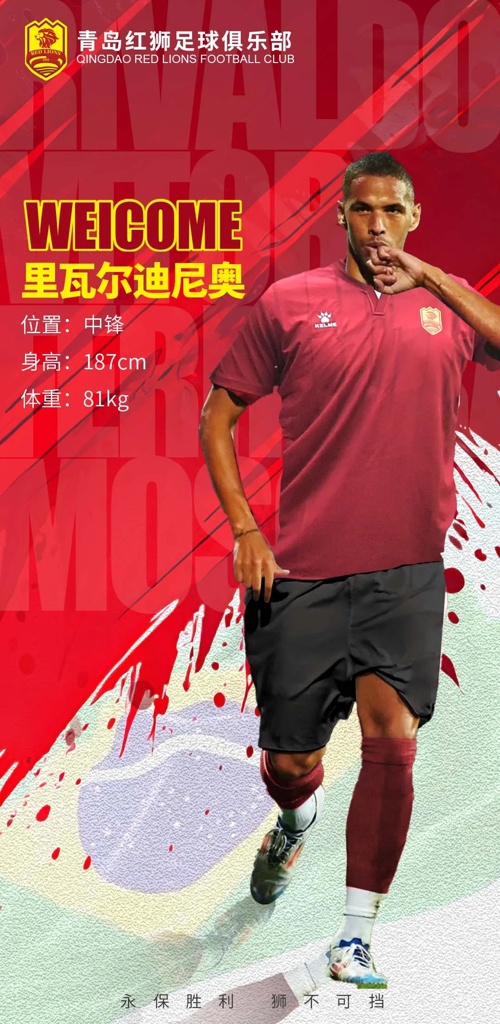 官方:里瓦尔多之子里瓦尔迪尼奥加盟中甲青岛红狮,双方签约3年