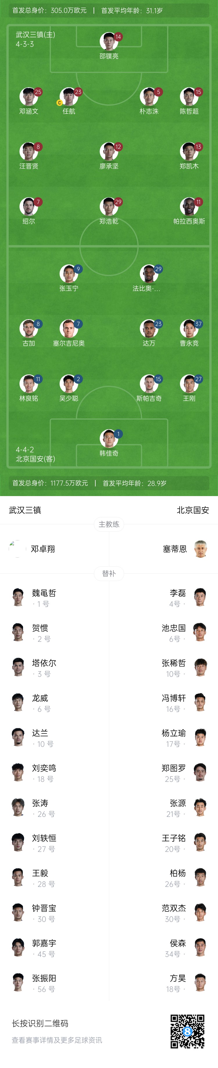 04月15日讯 19点35分中超第7轮,武汉三镇主场迎战北京国安。