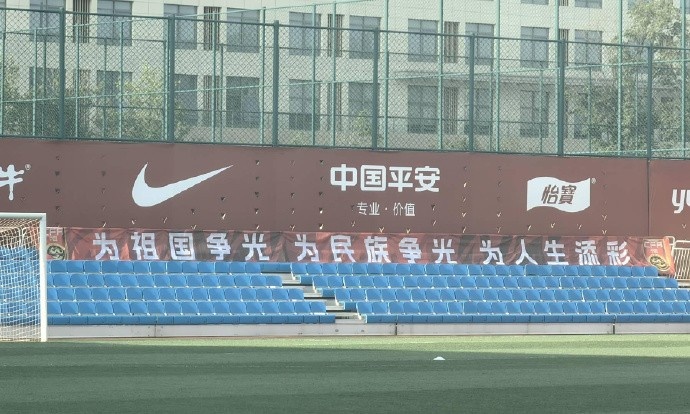 训练现场挂起了附有全新标语的励志横幅。上面写道:“新周期、新征程、新面貌”,以及“能征善战、作风优良”,“征途漫漫、唯有奋斗”,“为祖国争光、为民族争光、为人生添彩”,预示着全新国足已经正式踏上新周期备战的征程。